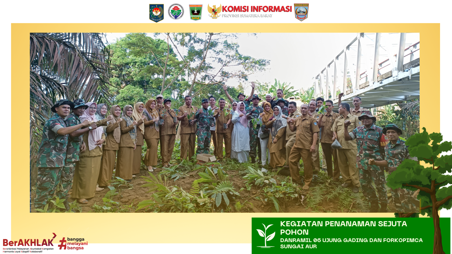 Haluan Nagari - Sungai Aua, Selasa 05 Desember 2023 Dalam rangka menjaga keberlanjutan lingkungan dan mengurangi risiko bencana banjir serta penyebaran demam berdarah, Danramil 06 Ujung Gading, Kapten Infantri Lilik Suryanto, bersama Forkopimca Sungai Aur, melaksanakan kegiatan penanaman sejuta pohon di sepanjang tepian aliran Sungai Batang Maligi, Kecamatan Sungai Aur. Kegiatan ini juga dihadiri oleh Camat Sungai Aur, Bapak Armaizon, S.Sos, bersama perangkat kecamatan, serta berbagai pihak terkait.